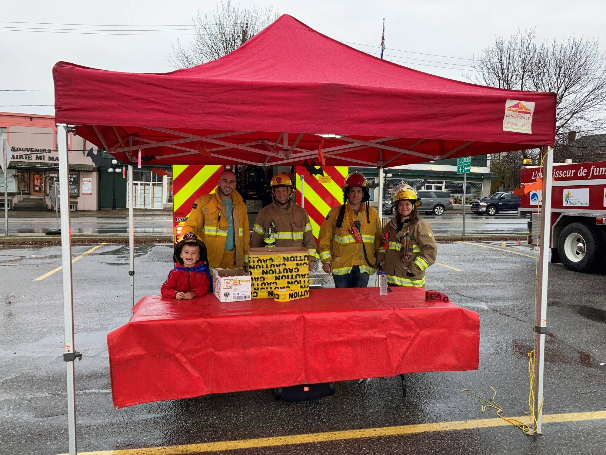 Les pompiers de Maniwaki étaient installés sous un abri dans le stationnement des Galeries Maniwaki pour faire la distribution de bonbons. Ils attendaient environ 200 enfants.