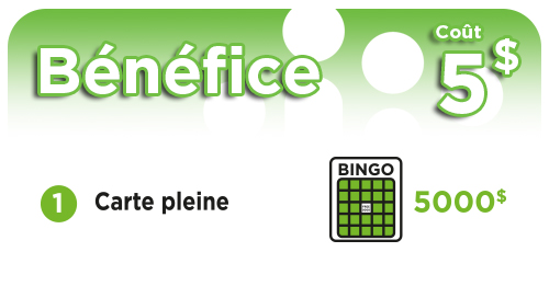 Le bingo de ce dimanche en est un spécial avec un total de 5000$ à gagner. Il se jouera sur des cartes vertes à 5$, disponibles chez les différents dépositaires.