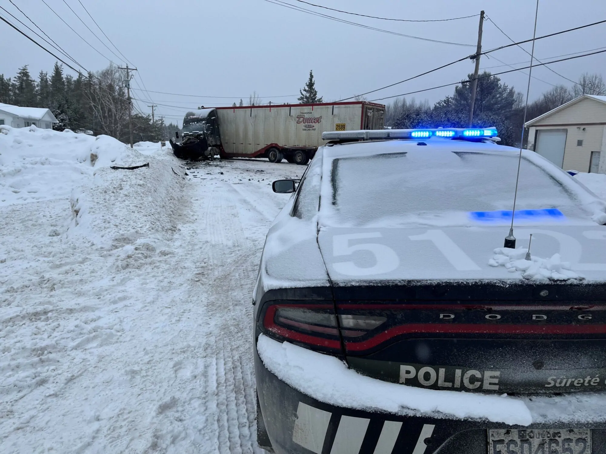 Le conducteur du camion n’aurait pas été blessé. L’enquête se poursuit afin de déterminer avec précision les circonstances de la collision.