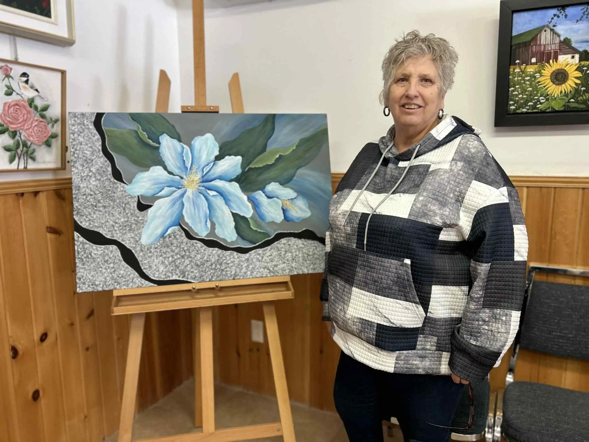 Paulette Gervais, artiste peintre depuis près de 50 ans et native Gatineau, vient passer tous ses étés dans la région. Pour elle, c’est l’occasion à la fois de promouvoir l’art, mais aussi de porter un message d’espoir en ces temps difficiles pour plusieurs :